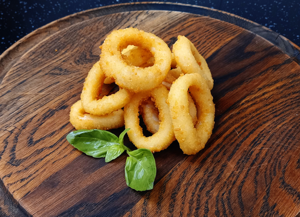 Кольца кальмара в панировке, обжаренные во фритюре. 9 шт.