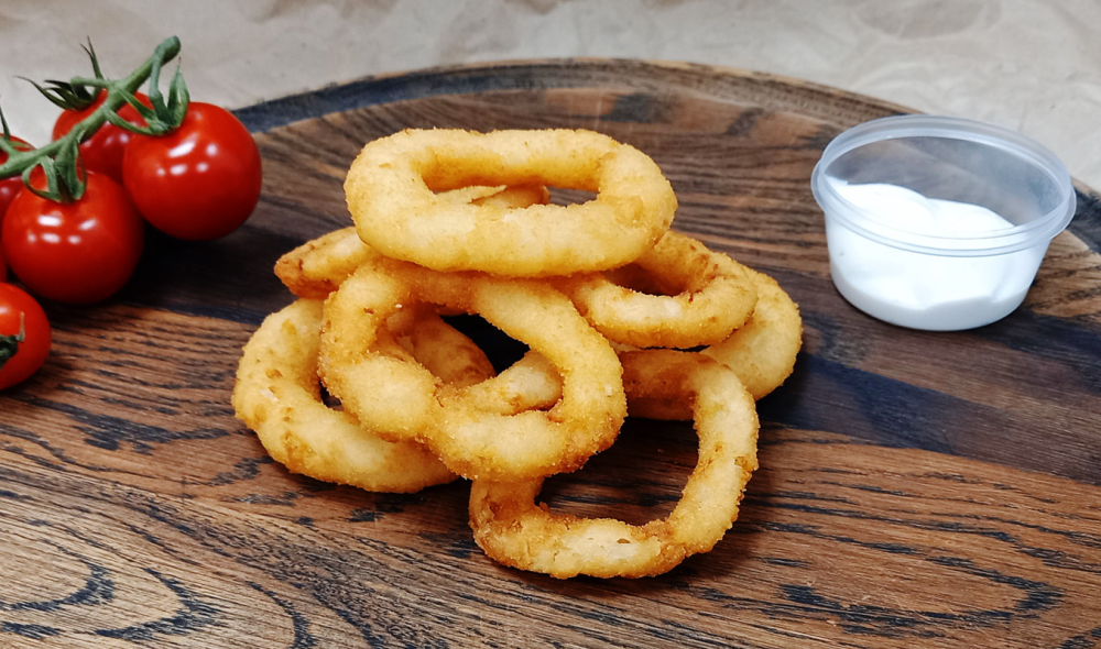 Луковые кольца в панировке, обжаренные во фритюре. 9 шт.