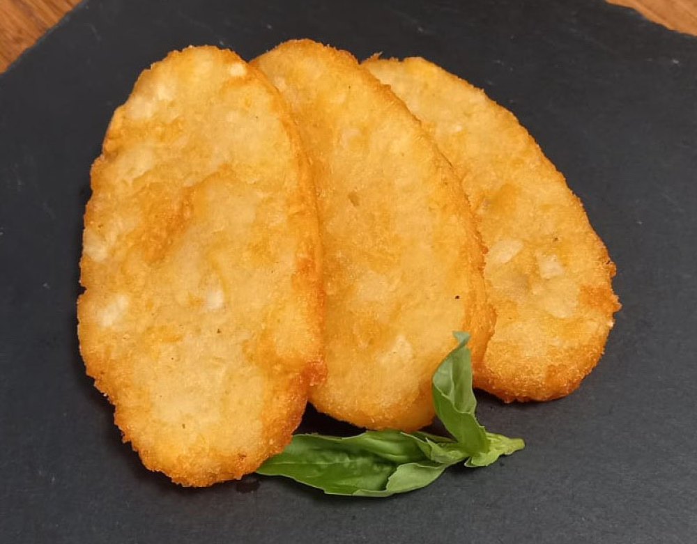 Картофельные драники из тертого картофеля, зажаренные во фритюре. Состав: картофель тертый, подсолнечное масло, соль, специи.